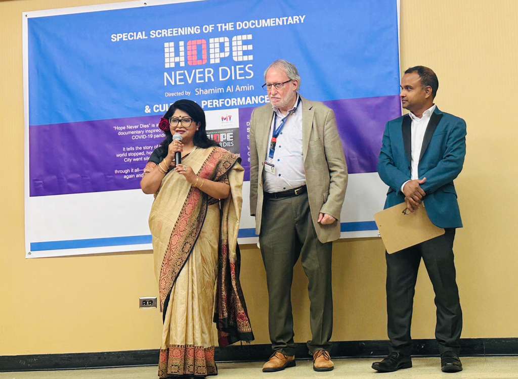 নিউইয়র্কের কুইন্স পাবলিক লাইব্রেরিতে অনুষ্ঠিত হলো কোভিড-১৯ মহামারিকালে মানুষের বাস্তবতা, কষ্ট এবং মানবিক বিপর্যয় নিয়ে নির্মিত প্রামাণ্যচিত্র “Hope Never Dies”–এর বিশেষ প্রদর্শনী। প্রামাণ্যচিত্রটি পরিচালনা করেছেন লেখক, সাংবাদিক ও নির্মাতা শামীম আল আমিন।